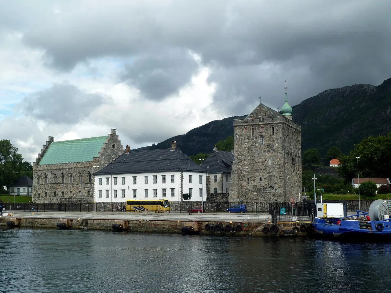 La Fortaleza de Bergenhus, ubicada en Bergen, Noruega, es un castillo medieval bien conservado que ofrece a los visitantes una visión de la historia noruega. Los terrenos de la fortaleza están abiertos al público y cuentan con varios edificios notables, incluyendo la Torre Rosenkrantz y el Salón de Haakon.